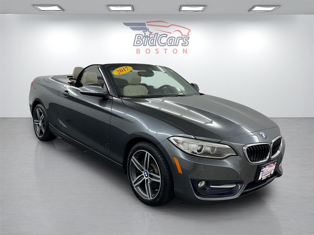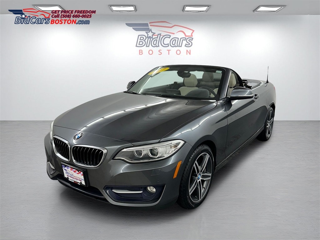 BidCars Boston is proud to present you with another True Market Priced Pre-Owned Vehicle. This 2017 BMW 2 Series 230i xDrive is loaded with the following Factory Options: 4-Wheel Disc Brakes, 6 Speakers, ABS brakes, Air Conditioning, Alloy wheels, AM/FM radio, Anti-whiplash front head restraints, Automatic temperature control, Brake assist, Bumpers: body-color, CD player, Convertible roof lining, Convertible roof wind blocker, Delay-off headlights, Driver door bin, Driver vanity mirror, Dual front impact airbags, Dual front side impact airbags, Electronic Stability Control, Emergency communication system: BMW Assist eCall, Four wheel independent suspension, Front anti-roll bar, Front Bucket Seats, Front Center Armrest, Front dual zone A/C, Front fog lights, Front reading lights, Front Sport Seats, Fully automatic headlights, Glass rear window, Hands-Free Bluetooth & USB Audio Connection, Heated door mirrors, Hi-Fi Sound System, Illuminated entry, Integrated roll-over protection, Knee airbag, Leather Shift Knob, Leather steering wheel, Low tire pressure warning, Occupant sensing airbag, Outside temperature display, Panic alarm, Passenger door bin, Passenger vanity mirror, Power convertible roof, Power door mirrors, Power driver seat, Power passenger seat, Power steering, Power windows, Radio data system, Radio: AM/FM/HD Stereo CD/MP3 Player, Rain sensing wipers, Rear anti-roll bar, Rear window defroster, Remote keyless entry, Security system, SensaTec Upholstery, Speed control, Speed-sensing steering, Speed-Sensitive Wipers, Sport steering wheel, Steering wheel mounted audio controls, Tachometer, Telescoping steering wheel, Tilt steering wheel, Traction control, Trip computer, Turn signal indicator mirrors, Variably intermittent wipers, and Wheels: 17" x 7.5" Light Alloy (Style 379)!!