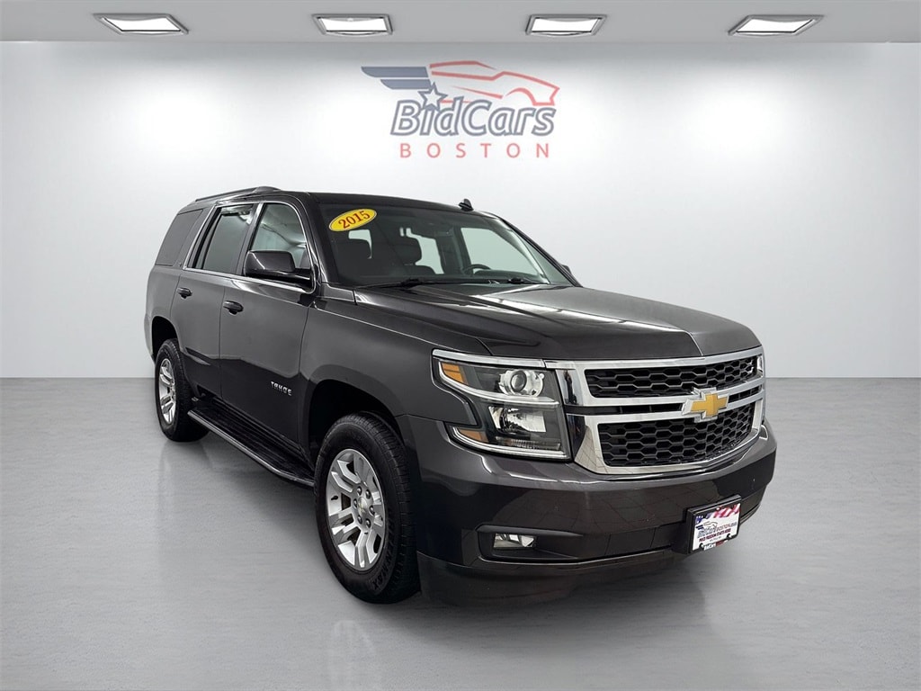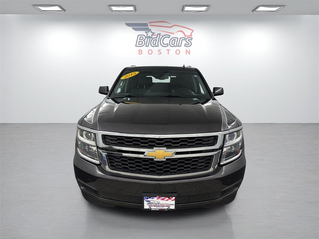 BidCars Boston is proud to present you with another True Market Priced Pre-Owned Vehicle. This 2015 Chevrolet Tahoe LT is loaded with the following Factory Options: 4WD and Black Leather License Plate Front Mounting Package, Luxury Package (2nd Row Pwr Release 60/40 Split Folding Bench Seat, 3rd Row 60/40 Power Fold Split-Bench, Extended-Range Remote Keyless Entry, Fog Lamps, Front & Rear Parking Assist, Hands Free Power Liftgate, Heated 2nd Row Seats, Heated Leather Wrapped Steering Wheel, Keyless Start Switch, Memory Settings, Passive Entry System, Power Tilt & Telescopic Steering Column w/Memory, Power-Folding Heated Outside Mirrors, Rear Cross-Traffic Alert, Side Blind Zone Alert w/Lane Change Alert, and Wireless Charging), Max Trailering Package (2-Speed Active Electronic AutoTrac Transfer Case, 3.42 Rear Axle Ratio, and Integrated Trailer Brake Controller), Preferred Equipment Group 1LT (2nd Row 60/40 Split-Folding Manual Bench, 3rd Row Manual 60/40 Split-Folding Fold Flat Bench, 5 12-Volt Auxiliary Power Outlets, Auto-Dimming Inside Rear-View Mirror, Driver Inboard & Front Passenger Airbags, Floor Console, Forward Collision Alert, Heavy-Duty Rear Locking Differential, Lane Departure Warning & Safety Alert Seat, Power Adjustable Pedals, Power Liftgate, Rear Park Assist w/Audible Warning, and Universal Home Remote), Premium Smooth Ride Suspension Package, Standard Suspension Package, Sun, Entertainment & Destinations Package (Bluetooth® For Phone, Power Sunroof, Radio: Chevrolet MyLink w/Navigation/AM/FM Stereo, and Rear Seat Blu-Ray/DVD Entertainment System), 4WD, Black Leather, 18" x 8.5" Aluminum Wheels, 3.08 Rear Axle Ratio, 3rd row seats: split-bench, 4-Wheel Disc Brakes, 9 Speakers, ABS brakes, Adjustable pedals, Air Conditioning, All-Weather Floor Mats, Alloy wheels, AM/FM radio: SiriusXM, Auto-dimming Rear-View mirror, Automatic temperature control, Bose Premium 9-Speaker System, Brake assist, Bumpers: body-color, CD player, Compass, Delay-off headlights, Driver door bin, Driver vanity mirror, Dual front impact airbags, Dual front side impact airbags, Electronic Stability Control, Emergency communication system: OnStar Directions & Connections, Exterior Parking Camera Rear, Front anti-roll bar, Front Bucket Seats, Front Center Armrest, Front dual zone A/C, Front Heated Reclining Bucket Seats, Front reading lights, Front wheel independent suspension, Fully automatic headlights, Garage door transmitter, Heated door mirrors, Heated front seats, Illuminated entry, Leather-Appointed Seat Trim, Low tire pressure warning, Memory seat, Occupant sensing airbag, Outside temperature display, Overhead airbag, Overhead console, Panic alarm, Passenger door bin, Passenger vanity mirror, Pedal memory, Power door mirrors, Power driver seat, Power passenger seat, Power Release 2nd Row Bucket Seats, Power steering, Power windows, Premium audio system: Chevrolet MyLink, Radio: Chevrolet MyLink AM/FM Stereo w/CD Player, Rain sensing wipers, Rear air conditioning, Rear anti-roll bar, Rear reading lights, Rear seat center armrest, Rear window defroster, Rear window wiper, Remote keyless entry, Roof rack: rails only, Security system, Single-Slot CD/MP3 Player, SiriusXM Satellite Radio, Speed control, Speed-sensing steering, Split folding rear seat, Spoiler, Steering wheel mounted audio controls, Tachometer, Telescoping steering wheel, Tilt steering wheel, Traction control, Trip computer, Variably intermittent wipers, and Voltmeter!!