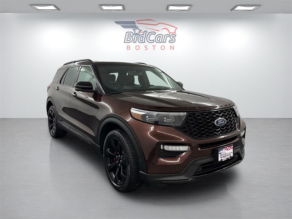BidCars Boston is proud to present you with another True Market Priced Pre-Owned Vehicle. This 2020 Ford Explorer ST is loaded with the following Factory Options: 4WD Equipment Group 400A, Premium Technology Package (10.1" LCD Capacitive Portrait Touchscreen, 2 Additional Speakers, and Leather Htd/Ventilated Sport Captain's Chairs), ST Street Pack (Performance Front & Rear Brakes and Wheels: 21" Aluminum), 4WD, 12 Speakers, 20" Machined Aluminum w/Painted Pockets Wheels, 3.58 Non-Limited-Slip Rear Axle Ratio, 3rd row seats: bench, 4-Wheel Disc Brakes, ABS brakes, Air Conditioning, Alloy wheels, AM/FM radio: SiriusXM, Auto High-beam Headlights, Auto-dimming door mirrors, Auto-dimming Rear-View mirror, Automatic temperature control, Brake assist, Bumpers: body-color, Compass, Delay-off headlights, Driver door bin, Driver vanity mirror, Dual front impact airbags, Dual front side impact airbags, Electronic Stability Control, Emergency communication system: SYNC 3 911 Assist, Exterior Parking Camera Rear, FordPass Connect, Four wheel independent suspension, Front anti-roll bar, Front Bucket Seats, Front Center Armrest, Front dual zone A/C, Front fog lights, Front reading lights, Fully automatic headlights, Garage door transmitter: HomeLink, Heated door mirrors, Heated front seats, Heated rear seats, Heated steering wheel, Illuminated entry, Knee airbag, Leather steering wheel, Low tire pressure warning, Memory seat, Navigation System, Occupant sensing airbag, Outside temperature display, Overhead airbag, Overhead console, Panic alarm, Passenger door bin, Passenger vanity mirror, Power door mirrors, Power driver seat, Power Liftgate, Power passenger seat, Power steering, Power windows, Radio data system, Radio: B&O Sound System by Bang & Olufsen, Rain sensing wipers, Rear air conditioning, Rear anti-roll bar, Rear reading lights, Rear window defroster, Rear window wiper, Remote keyless entry, Roof rack: rails only, Security system, Speed control, Speed-sensing steering, Speed-Sensitive Wipers, Split folding rear seat, Spoiler, Sport steering wheel, Steering wheel memory, Steering wheel mounted audio controls, SYNC 3 Communications & Entertainment System, SYNC 3/Apple CarPlay/Android Auto, Tachometer, Telescoping steering wheel, Tilt steering wheel, Traction control, Trip computer, Turn signal indicator mirrors, Twin Panel Moonroof, Variably intermittent wipers, Ventilated front seats, and Voice-Activated Touchscreen Navigation System!!