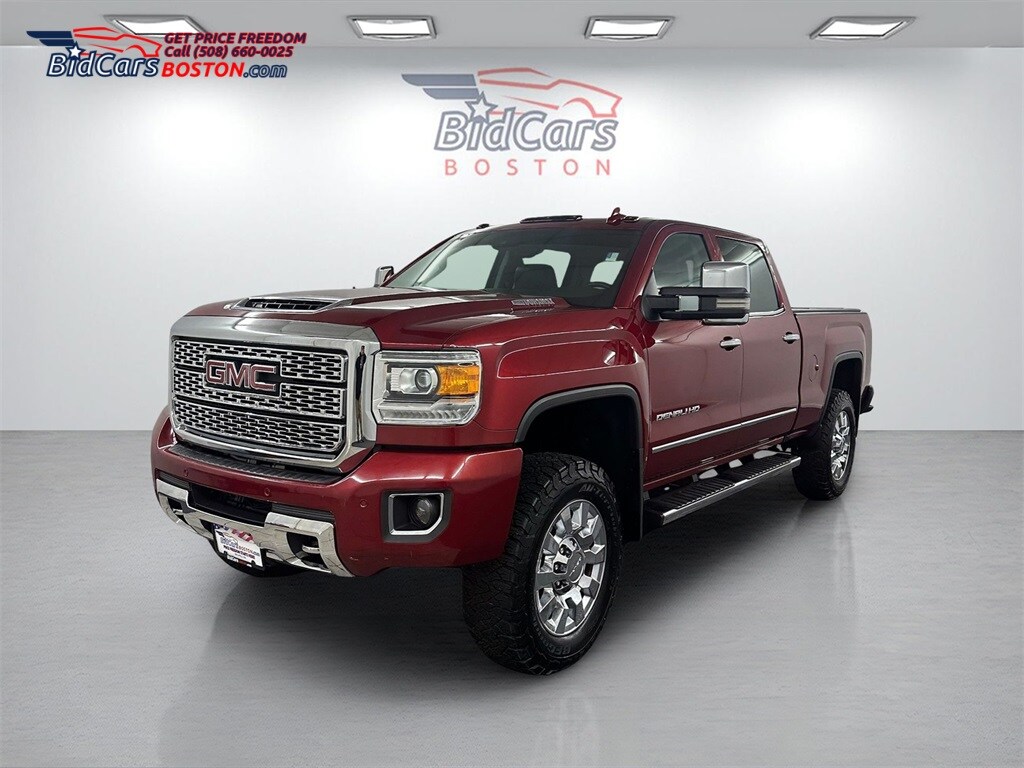 BidCars Boston is proud to present you with another True Market Priced Pre-Owned Vehicle. This 2018 GMC Sierra 2500HD Denali is loaded with the following Factory Options: Allison 1000 6-Speed Automatic, 4WD, and Jet Black Leather Cargo Convenience Package (Console Insert Expandable Folder Tote (LPO), Front & Rear All-Weather Floor Mats, and Rear Underseat Storage (LPO)), Driver Alert Package (Forward Collision Alert, Lane Departure Warning System, and Ultrasonic Front & Rear Park Assist), Duramax Plus Package (Chrome Power-Adjustable Heated Outside Mirrors and Chrome Recovery Hooks), Gooseneck/5th Wheel Prep Package, Heavy-Duty Handling/Trailering Suspension Package, Off-Road Package (Hill Descent Control and Z71 Chrome Front Fender Emblems), Preferred Equipment Group 5SA (110-Volt AC Power Outlet, 150 Amps Alternator, 8" Multi-Color Driver Instrument Info Display, Auto-Dimming Inside Rear-View Mirror, Black Frame-Mounted Front Recovery Hooks, Body-Color Front Bumper, Bose 7 Speaker Sound System, Chrome Bodyside Moldings, Chrome Door Handles, Color-Keyed Carpeted Floor Mats, Color-Keyed Carpeting Floor Covering, Deep-Tinted Glass, Driver & Front Passenger Vanity Mirror Visors, Dual-Zone Automatic Climate Control, Electric Rear-Window Defogger, Electronic Shift Transfer Case, EZ-Lift & Lower Tailgate, Front Halogen Fog Lamps, GMC 4G LTE, GMC Connected Access, HD Radio, Heated & Ventilated Front Bucket Seats, Heated Leather Wrapped Steering Wheel, Heated Power-Adjustable Outside Mirrors, Manual Tilt-Wheel/Telescoping Steering Column, OnStar & GMC Connected Services Capable, Power Sliding Rear Window w/Defogger, Power Windows w/Driver Express Up & Down, Power-Adjustable Pedals For Accelerator & Brake, Rear 60/40 Folding Bench Seat (Folds Up), Rear Body-Color Bumper w/Bumper CornerSteps, Rear Wheelhouse Liners, Remote Keyless Entry, Remote Locking Tailgate, Remote Vehicle Starter System, Single Slot CD/MP3 Player, SiriusXM Satellite Radio, Steering Wheel Audio Controls, Theft Deterrent System (Unauthorized Entry), and Universal Home Remote), Trailering Equipment (Trailer Brake Controller), Allison 1000 6-Speed Automatic, 4WD, Jet Black Leather, 220 Amps Alternator, 4-Wheel Disc Brakes, 7 Speakers, ABS brakes, Adjustable pedals, Air Conditioning, Alloy wheels, AM/FM radio: SiriusXM, Apple CarPlay/Android Auto, Auto-dimming door mirrors, Auto-dimming Rear-View mirror, Automatic temperature control, Bluetooth® For Phone, Bodyside moldings, Brake assist, Bumpers: body-color, CD player, Chrome wheels, Compass, Delay-off headlights, Driver door bin, Driver vanity mirror, Dual front impact airbags, Dual front side impact airbags, Electronic Stability Control, Engine Block Heater, Exhaust Brake, Exterior Parking Camera Rear, Floor Mounted Console, Front & Rear Molded Splash Guards, Front anti-roll bar, Front Bucket Seats, Front Center Armrest, Front dual zone A/C, Front fog lights, Front Full Feature Ventilated Bucket Seats, Front License Plate Kit, Front reading lights, Front wheel independent suspension, Fully automatic headlights, Garage door transmitter, Heated door mirrors, Heated Driver and Front Passenger Seats, Heated front seats, Heated steering wheel, High-Intensity Discharge Headlights, Illuminated entry, Low tire pressure warning, Memory seat, Navigation System, Occupant sensing airbag, Outside temperature display, Overhead airbag, Overhead console, Panic alarm, Passenger door bin, Passenger vanity mirror, Perforated Leather Appointed Seat Trim, Power door mirrors, Power driver seat, Power passenger seat, Power steering, Power Sunroof, Power windows, Premium audio system: GMC Infotainment System, Radio: AM/FM/SiriusXM/HD w/Navigation, Rear reading lights, Rear seat center armrest, Rear step bumper, Rear window defroster, Remote keyless entry, Security system, Smoked Amber Roof Marker Lamps, Speed control, Speed-sensing steering, Split folding rear seat, Steering w