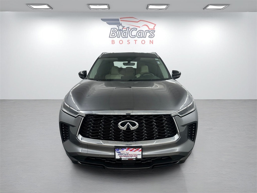 BidCars Boston is proud to present you with another True Market Priced Pre-Owned Vehicle. This 2023 INFINITI QX60 LUXE is loaded with the following Factory Options: 3rd row seats: bench, 4-Wheel Disc Brakes, 4.334 Axle Ratio, 9 Speakers, ABS brakes, Air Conditioning, Alloy wheels, AM/FM radio: SiriusXM, Anti-whiplash front head restraints, Auto High-beam Headlights, Auto-dimming door mirrors, Auto-dimming Rear-View mirror, Automatic temperature control, Brake assist, Bumpers: body-color, Climate-Controlled Front Bucket Seats, Delay-off headlights, Driver door bin, Driver vanity mirror, Dual front impact airbags, Dual front side impact airbags, Electronic Stability Control, Emergency communication system, Four wheel independent suspension, Front anti-roll bar, Front Bucket Seats, Front Center Armrest, Front dual zone A/C, Front reading lights, Fully automatic headlights, Garage door transmitter: HomeLink, Heated door mirrors, Heated front seats, Heated steering wheel, Illuminated entry, Knee airbag, Leather Shift Knob, Leather steering wheel, Leather-Appointed Seating Surfaces, Low tire pressure warning, Memory seat, Navigation system: INFINITI InTouch Navigation, Occupant sensing airbag, Outside temperature display, Overhead airbag, Overhead console, Panic alarm, Passenger door bin, Passenger vanity mirror, Power door mirrors, Power driver seat, Power Liftgate, Power moonroof, Power passenger seat, Power steering, Power windows, Radio data system, Radio: AM/FM Audio System, Rain sensing wipers, Rear air conditioning, Rear anti-roll bar, Rear reading lights, Rear seat center armrest, Rear side impact airbag, Rear window defroster, Rear window wiper, Reclining 3rd row seat, Remote keyless entry, Security system, Speed control, Speed-sensing steering, Speed-Sensitive Wipers, Split folding rear seat, Spoiler, Steering wheel memory, Steering wheel mounted audio controls, Tachometer, Telescoping steering wheel, Tilt steering wheel, Traction control, Trip computer, Turn signal indicator mirrors, Variably intermittent wipers, Ventilated front seats, and Wheels: 20" x 8J Sporty Machined Aluminum Alloy!!