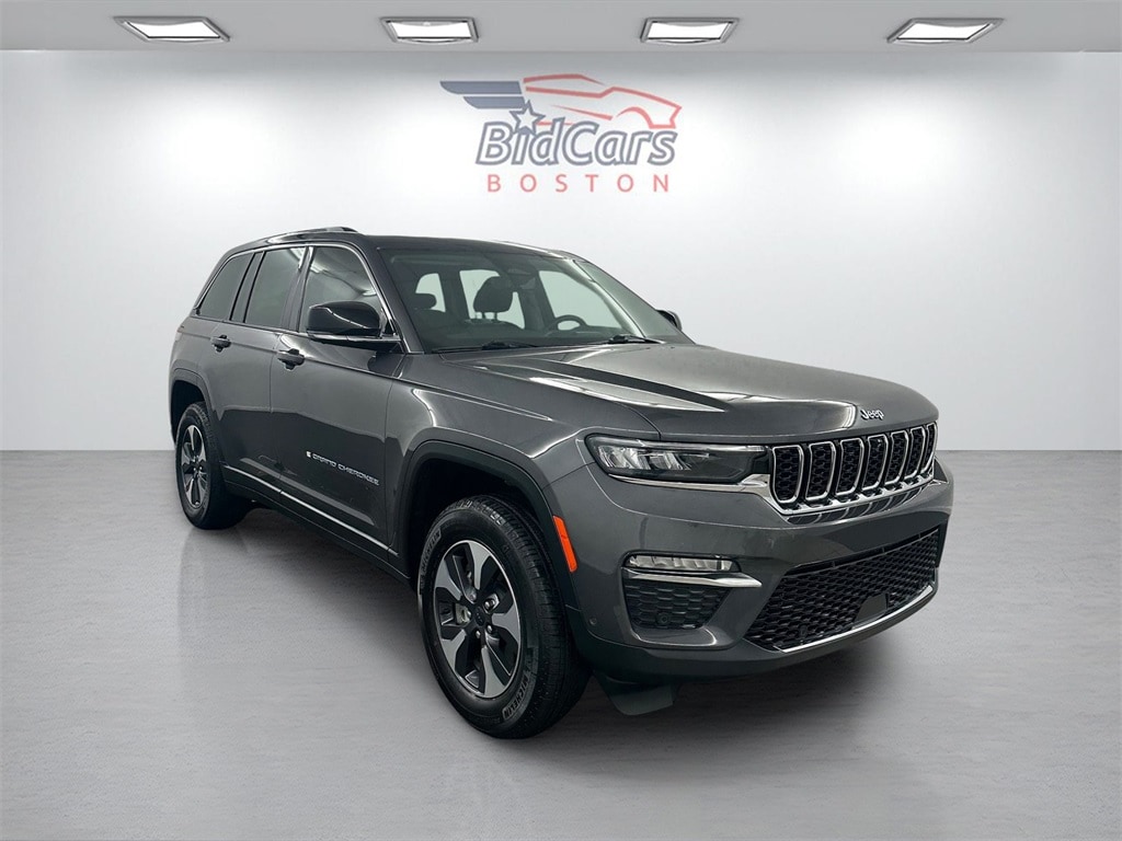 BidCars Boston is proud to present you with another True Market Priced Pre-Owned Vehicle. This 2022 Jeep Grand Cherokee 4xe is loaded with the following Factory Options: 2.0L I4 DOHC and 4WD Luxury Tech Group II (2nd-Row Manual Window Shades, Auto-Dimming Exterior Driver Mirror, Capri Leather Seats w/Perforated Inserts, Integrated Off-Road Camera, Intersection Collision Assist System, Memory Steering Column, ParkSense Front/Rear Park Assist w/Stop, Passive Entry - Front/Rear Doors, Liftgate, Power Tilt/Telescope Steering Column, Rain Sensitive Windshield Wipers, Rear Back Up Camera Washer, Rearview Autodim Digital Display Mirror, Surround View Camera System, Ventilated Front Seats, and Wireless Charging Pad), Quick Order Package 27F, 2.0L I4 DOHC, 4WD, 10 Speakers, 10.1" Touchscreen Display, 3.70 Rear Axle Ratio, 4-Wheel Disc Brakes, 4G LTE Wi-Fi Hot Spot, ABS brakes, Air Conditioning, All Radio Equipped Vehicles, Alloy wheels, AM/FM radio: SiriusXM with 360L, Anti-whiplash front head restraints, Apple CarPlay, Audio memory, Auto High-beam Headlights, Automatic temperature control, Brake assist, Bumpers: body-color, Capri Leather Seats, Compass, Connected Travel & Traffic Services, Connectivity - US/Canada, Delay-off headlights, Disassociated Touchscreen Display, Driver door bin, Driver vanity mirror, Dual front impact airbags, Dual front side impact airbags, Dual-Pane Panoramic Sunroof (DISC), Electronic Stability Control, For Details, Visit DriveUconnect.com, For More Info, Call 800-643-2112, Four wheel independent suspension, Front anti-roll bar, Front Bucket Seats, Front Center Armrest w/Storage, Front dual zone A/C, Front fog lights, Front Passenger Interactive Display, Front reading lights, Fully automatic headlights, Garage door transmitter, Global Telematics Box Module (TBM), Google Android Auto, GPS Antenna Input, GPS Navigation, HD Radio, Heated door mirrors, Heated front seats, Heated rear seats, Heated steering wheel, Heavy Duty Suspension, Illuminated entry, Integrated Center Stack Radio, Integrated Voice Command w/Bluetooth, Knee airbag, Leather steering wheel, Low tire pressure warning, Memory seat, Occupant sensing airbag, Outside temperature display, Overhead airbag, Overhead console, Panic alarm, ParkView Rear Back-Up Camera, Passenger door bin, Passenger vanity mirror, Power door mirrors, Power driver seat, Power Liftgate, Power passenger seat, Power steering, Power windows, Pur Wrapped Instrument Panel, Radio data system, Radio: Uconnect 5 Nav w/10.1" Display, Radio: Uconnect 5 w/8.4" Display, Rear anti-roll bar, Rear reading lights, Rear window defroster, Rear window wiper, Remote keyless entry, Roof rack: rails only, Security system, SiriusXM Radio Service, SiriusXM Satellite Radio, SiriusXM w/360L, Speed control, Speed-Sensitive Wipers, Split folding rear seat, Spoiler, Steering wheel mounted audio controls, Tachometer, Telescoping steering wheel, Tilt steering wheel, Traction control, Trip computer, Turn signal indicator mirrors, USB Host Flip, Variably intermittent wipers, Voltmeter, and Wheels: 18" x 8" Fully Painted Aluminum!!