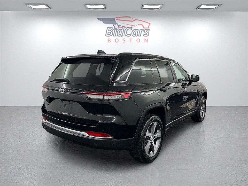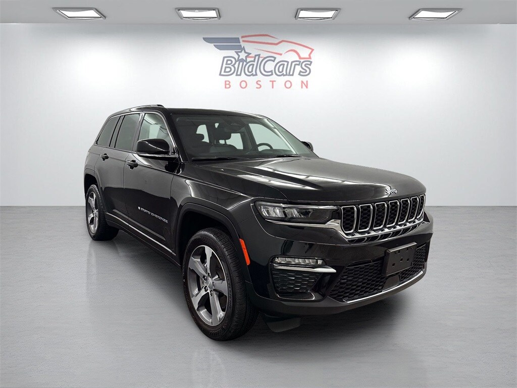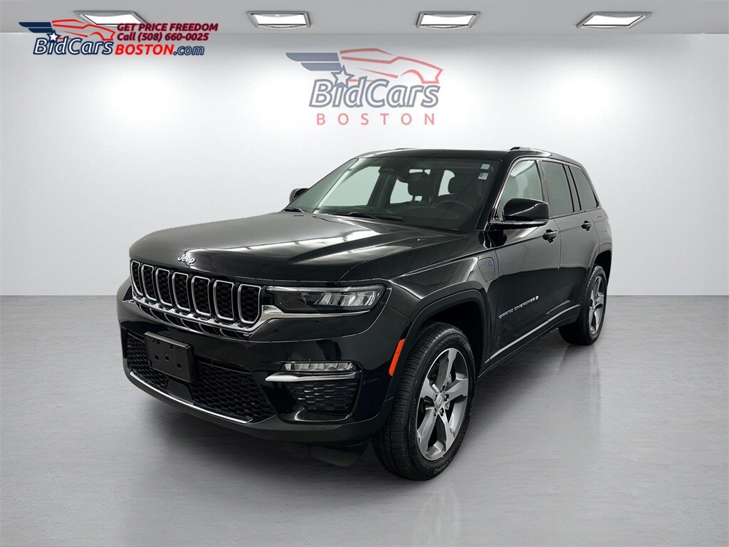 BidCars Boston is proud to present you with another True Market Priced Pre-Owned Vehicle. This 2023 Jeep Grand Cherokee 4xe is loaded with the following Factory Options: 2.0L I4 DOHC and 4WD Quick Order Package 27F, 2.0L I4 DOHC, 4WD, 10 Speakers, 3.70 Rear Axle Ratio, 4-Wheel Disc Brakes, ABS brakes, Air Conditioning, Alloy wheels, AM/FM radio: SiriusXM with 360L, Anti-whiplash front head restraints, Audio memory, Auto High-beam Headlights, Automatic temperature control, Brake assist, Bumpers: body-color, Capri Leatherette Seats, Compass, Delay-off headlights, Driver door bin, Driver vanity mirror, Dual front impact airbags, Dual front side impact airbags, Electronic Stability Control, Four wheel independent suspension, Front anti-roll bar, Front Bucket Seats, Front Center Armrest w/Storage, Front dual zone A/C, Front fog lights, Front License Plate Bracket, Front reading lights, Fully automatic headlights, Garage door transmitter, Heated door mirrors, Heated front seats, Heated rear seats, Heated steering wheel, Heavy Duty Suspension, Illuminated entry, Knee airbag, Low tire pressure warning, Memory seat, Navigation System, Occupant sensing airbag, Outside temperature display, Overhead airbag, Overhead console, Panic alarm, ParkView Rear Back-Up Camera, Passenger door bin, Passenger vanity mirror, Power door mirrors, Power driver seat, Power Liftgate, Power moonroof, Power passenger seat, Power steering, Power windows, Radio data system, Radio: Uconnect 5 Nav w/10.1" Display, Rear anti-roll bar, Rear reading lights, Rear window defroster, Rear window wiper, Remote keyless entry, Security system, Speed control, Speed-Sensitive Wipers, Split folding rear seat, Spoiler, Steering wheel mounted audio controls, Tachometer, Telescoping steering wheel, Tilt steering wheel, Traction control, Trip computer, Turn signal indicator mirrors, Variably intermittent wipers, Voltmeter, Wheels: 18" x 8" Fully Painted Aluminum, and Wheels: 20" x 8.5" Machined Painted Aluminum!!