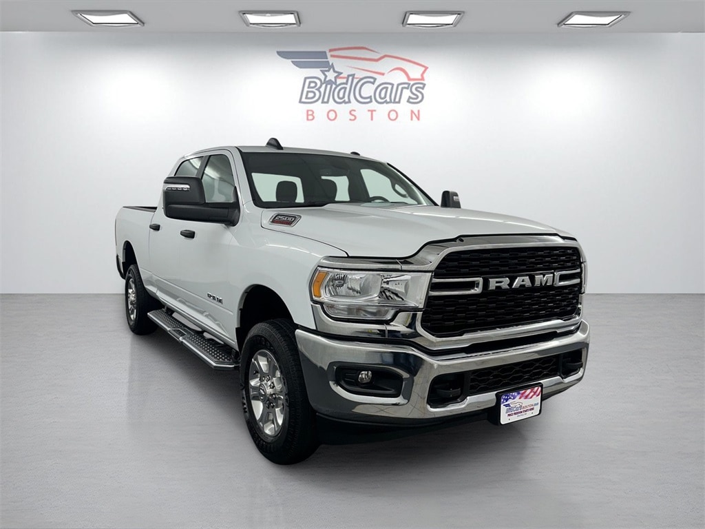 BidCars Boston is proud to present you with another True Market Priced Pre-Owned Vehicle. This 2024 Ram 2500 Big Horn is loaded with the following Factory Options: Level 1 Equipment Group (2 Way Rear Headrest Seat, 2nd Row In Floor Storage Bins, 4 Way Front Headrests, 40/20/40 Split Bench Seat, 4G LTE Wi-Fi Hot Spot, 8.4" Touchscreen Display, Apple CarPlay, Auto Power-Folding Mirrors, Big Horn IP Badge, Black Exterior Mirrors, Bluetooth Handsfree Phone & Audio, Center Hub, Connectivity - US/Canada, Dual Glove Boxes, Exterior Mirrors Courtesy Lamps, Exterior Mirrors w/Heating Element, Exterior Mirrors w/Supplemental Signals, Foam Bottle Insert (Door Trim Panel), Footwell Courtesy Lamp, For Details, Visit DriveUconnect.com, For More Info, Call 800-643-2112, Forward & Reverse Utility Lights, Front Armrest w/Cupholders, Front Center Seat Cushion Storage, Front Fog Lamps, Front Seat Back Map Pockets, Global Telematics Box Module (TBM), Glove Box Lamp, Google Android Auto, GPS Antenna Input, Integrated Center Stack Radio, Integrated Voice Command w/Bluetooth, Leather Wrapped Steering Wheel, Locking Lower Glove Box, Manual Adjust 4-Way Front Passenger Seat, Mirror Running Lights, Power 2-Way Driver Lumbar Adjust, Power Adjust 8-Way Driver Seat, Power Adjust Mirrors, Power Adjustable Convex Aux Mirrors, Power Heated Fold Telescope Mirrors, Power Telescoping Mirrors, Rear 60/40 Folding Seat, Rear Dome w/On/Off Switch Lamp, Remote USB Port - Charge Only, Selectable Tire Fill Alert, SiriusXM Radio Service, SiriusXM Satellite Radio, Steering Wheel Mounted Audio Controls, Storage Tray, and Wheels: 18" x 8.0" Polished Aluminum), Quick Order Package 2GZ Big Horn, 3.73 Axle Ratio, 4-Wheel Disc Brakes, 6 Speakers, ABS brakes, Active Noise Control System, Air Conditioning, Brake assist, Bumpers: chrome, Center Stack Storage Drawer, Chrome Flat Cab-Length Side Steps, Cloth 40/20/40 Bench Seat, Compass, Delay-off headlights, Driver door bin, Dual front impact airbags, Dual front side impact airbags, Electronic Stability Control, Electronically Controlled Throttle, Emergency communication system: SiriusXM Guardian, Front anti-roll bar, Front Center Armrest w/Storage, Front License Plate Bracket, Front reading lights, Fully automatic headlights, Heated door mirrors, Illuminated entry, Low tire pressure warning, Manual Adjust 4-Way Driver Seat, Manufacturer's Statement of Origin, Occupant sensing airbag, Outside temperature display, Overhead airbag, Overhead console, Panic alarm, ParkView Rear Back-Up Camera, Passenger door bin, Passenger vanity mirror, Power door mirrors, Power steering, Power windows, Premium Cloth 40/20/40 Bench Seat (DISC), Radio data system, Radio: Uconnect 3 w/5" Display, Radio: Uconnect 5 W w/8.4" Display, Rear anti-roll bar, Rear Folding Seat, Rear seat center armrest, Rear step bumper, Remote keyless entry, Speed control, Tachometer, Tilt steering wheel, Tip Start, Tow Hooks, Traction control, Trip computer, Turn signal indicator mirrors, Variably intermittent wipers, Voltmeter, and Wheels: 18" x 8.0" Steel Chrome Clad!!