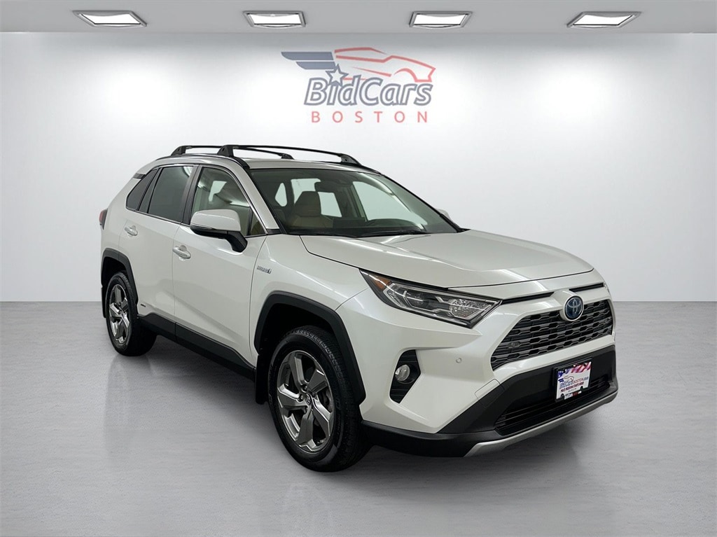 BidCars Boston is proud to present you with another True Market Priced Pre-Owned Vehicle. This 2019 Toyota RAV4 Hybrid Limited is loaded with the following Factory Options: 2.5L 4-Cylinder 2.5L 4-Cylinder, 4-Wheel Disc Brakes, 6 Speakers, ABS brakes, Air Conditioning, Alloy wheels, AM/FM radio: SiriusXM, Apple CarPlay, Auto High-beam Headlights, Auto-dimming Rear-View mirror, Automatic temperature control, Axle Ratio: TBD, Brake assist, Bumpers: body-color, Delay-off headlights, Driver door bin, Driver vanity mirror, Dual front impact airbags, Dual front side impact airbags, Electronic Stability Control, Emergency communication system: Safety Connect, Four wheel independent suspension, Front anti-roll bar, Front Bucket Seats, Front Center Armrest, Front dual zone A/C, Front fog lights, Front reading lights, Fully automatic headlights, Garage door transmitter: HomeLink, Heated door mirrors, Heated Front Seats, Heated front seats, Illuminated entry, Knee airbag, Leather Shift Knob, Low tire pressure warning, Memory seat, Navigation System, Occupant sensing airbag, Outside temperature display, Overhead airbag, Overhead console, Panic alarm, Passenger door bin, Passenger vanity mirror, Power door mirrors, Power driver seat, Power Liftgate, Power moonroof, Power steering, Power windows, Radio data system, Radio: Entune 3.0 Premium Audio w/Navigation, Rear anti-roll bar, Rear seat center armrest, Rear window defroster, Rear window wiper, Remote keyless entry, Roof rack: rails only, Security system, SofTex Seat Trim, Speed control, Speed-sensing steering, Split folding rear seat, Spoiler, Steering wheel mounted audio controls, Telescoping steering wheel, Tilt steering wheel, Traction control, Trip computer, Turn signal indicator mirrors, Variably intermittent wipers, and Wheels: 18" x 7.0J Chrome-Finished Aluminum Alloy!!